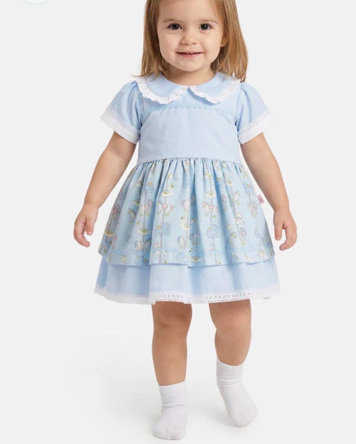 Baby Girl Blue Carousel Dress | Spanish Style Toddler Dress | Summer Party Dress | Traditional Smocked Style | 6–24 Months